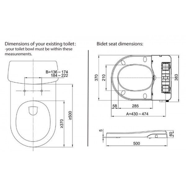 Just installed the Maro Bidet seat after having another bidet from another company for many years. Loved the old model, but it looked like you were going to sit on a seat that would beam you to the moon, so was looking for something more discreet. This one is that for sure. The elongated seat worked on my elongated toilet. There is a little elevation in the back of the seat so you adjust your bottom a bit to "fit", but no problem.